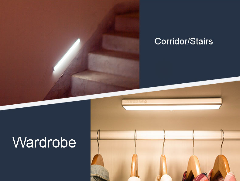FEATURES *High bright, high sensitivity, low power consumption, long operating life, energy saving *Aluminum alloy housing, good quality and high fashion *Easy installation, no wiring, no screw needed; Magnetic base, magnetic fixed *Adopting the environment illumination recognition technology: daytime and night mode *Using advanced PIR sensing technology, the LED Motion Sensing Lights will automatically light up or light off when body enter or leave the sensing area. *The LED Motion Sensing Lights can be used in bedroom, bathroom, kitchen, corridor, attic, wardrobe, etc.